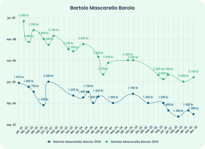 Herunder ses prisudviklingen på ShareWine på en række populære vine fra Toscana og Piemonte.